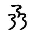 甲骨文作,像一個彎折多重的線條,用以表示發言措詞的為難。金文、戰國文字、篆文承之甲文,而籀文、古文彎折更多。隸書二例,左側增一斜筆,楷書沿之而定體。在六書中屬於指事。有學者以為甲文、金文像一條繩子(《漢字演變五百例》,P.230),可備一說。