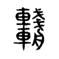 〔𨏺〕字是上下结构,可拆字为“車、車、戔、舟”或“輚、輈”。