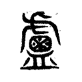 卢:吃饭用具。字形采用“皿”作边旁,采用“”作声旁。