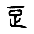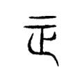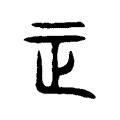 - (ancient form of 正) the right side, proper, pure, honest and virtuous, original, exactly