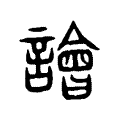 金文從言、聲,戰國文字同。篆文從言、?聲,《說文》籀文從言、會聲。楷書從言,右旁訛成「舌」。字從「言」為義符,表示是與言語有關的動作;從「