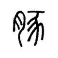 豚,小猪。字形采用省略了“口”的“彖”作边旁,象形。采用“又”作边旁,像一手持肉,以便祭祀。所有与豚相关的字,都采用 “豚”作边旁。豚,篆文字形采用“肉、豕”会义。