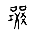 音《唐韻》:女耕切;《集韻》:尼庚切,𡘋音獰。《說文》:亂也。从爻、工交叩。一曰窒𤕦。【註】徐鍇曰:二口噂沓也,爻物相交貿也,工人所作也,已象交構形。〇【按】《玉篇》書作𤕦,誤。